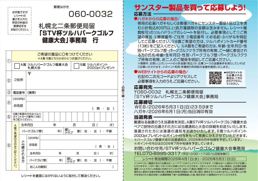 お問合せ先:STV杯ツルハパークゴルフ健康大会事務局 TEL:070-8995-3317(平日10:00~17:00)
